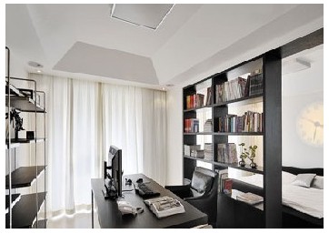 臥室與書房間僅由書架作為空間的隔斷,隔而不斷,讓空間保持完整性。