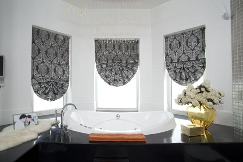 白色的空間配以金色點綴,這樣的復古搭配使得空間內(nèi)金碧輝煌,鏡框和浴室柜上的雕刻也具有濃重的皇族氣息,高貴的整體空間配以多功能化的衛(wèi)浴設(shè)計是古典的華美與現(xiàn)代的簡約的完美結(jié)合。躺在寬敞的浴缸中透過水霧仰望整個空間,就像自己置身于迷霧中的宮殿一般,亦幻亦真。這是高質(zhì)量生活的一種象征。