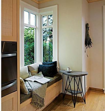 獨(dú)家點(diǎn)評(píng):用柔軟的墊背營(yíng)造出舒適、溫暖的感覺,旁邊加上的三角形小桌子,立馬在小小的空間內(nèi)獨(dú)立出一個(gè)休閑區(qū),可謂匠心獨(dú)運(yùn)。