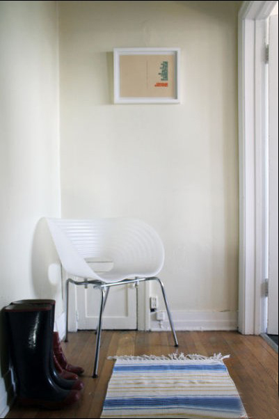 這里是進(jìn)門換鞋子的地方,擺放的椅子可以很方便的換鞋或穿鞋,留出的空間正合適這樣一個活動的椅子,如果定制的換鞋椅,空間就顯得擁擠了。