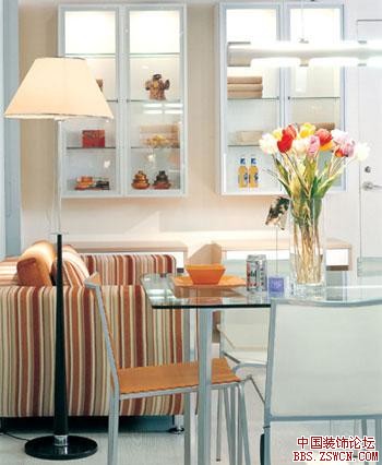 在用餐區(qū)裝設(shè)鏡子,映照出餐桌上的食物,有使財(cái)富加倍的效果。這是家中唯一可以懸掛鏡子映照食物的地方,其他諸如廚房是絕對(duì)不能掛鏡子,因?yàn)闀?huì)導(dǎo)致意外或火災(zāi)發(fā)生