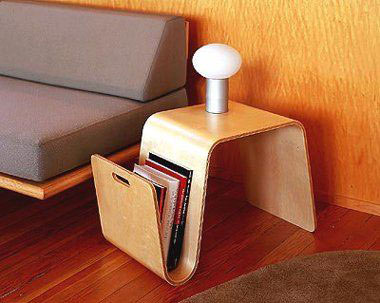1.幾何形木制邊桌:整個邊桌由一塊完整的幾何形木板彎曲而成,線條流暢、一氣呵成。不僅可置于床頭、沙發(fā)及扶椅邊,又是擺放燈具、雜志和飲料的好地方。