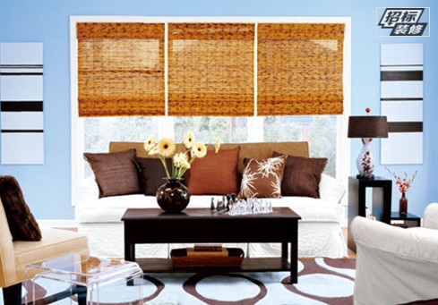 三個客廳案例改造都是同一位置,結構上沒有任何的變化,只是把周邊的家具或色彩做了變動。藍色一直是這間客廳的主色,直到加入了一抹重重的巧克力色的介入,風格便變成了活力十足的都市風格。飽滿優(yōu)雅的棕色很容易運用,白與棕色相間的地毯,麥稈質(zhì)地的窗簾都為房間增添了自然樸質(zhì)的風味。靠包的色彩搭配要豐富、有趣,每個靠包間最好要有色彩上的關聯(lián)。裝飾畫不一定越貴越好,這間客廳里的裝飾畫就是普通的油畫布漆上比墻面稍淺的顏色,再漆上棕色的線條,簡單又抽象。