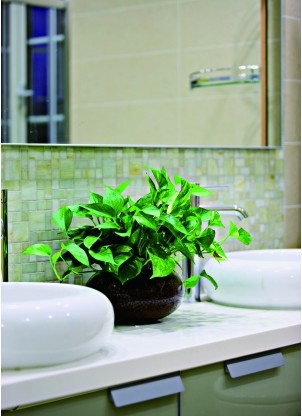 3. 大多數(shù)衛(wèi)生間墻面多用白色或淺色瓷磚,搭配上綠色的觀賞植物,會(huì)更加顯眼悅目。但有些瓷磚的光潔美觀的釉面磚能釋放出放射性物質(zhì),對(duì)人體健康有害,這時(shí),我們就可以放置一盆煙草、雞冠花等植物,其對(duì)吸收放射性物質(zhì)很有幫助。