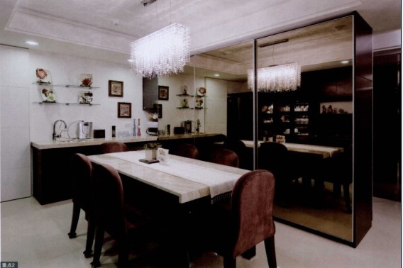 本案的業(yè)主是一位擁有自己事業(yè)的職業(yè)女性,對于穿著與飾品的搭配相當重視,明確地表達其需要有足夠的空間來收納名牌包包及鞋子。設(shè)計師在規(guī)劃空間時,即把其需求融入,鞋類的收納主要在于入門玄關(guān),以雙面柜擴大收納空間。玄關(guān)天花板以業(yè)主最愛的水晶搭配鏡面,以LED燈營造出如繁星般的效果。衣物的收納則著重于主臥,結(jié)合更衣室與梳妝、淋浴間規(guī)劃,打造出收納功能充足的空間。