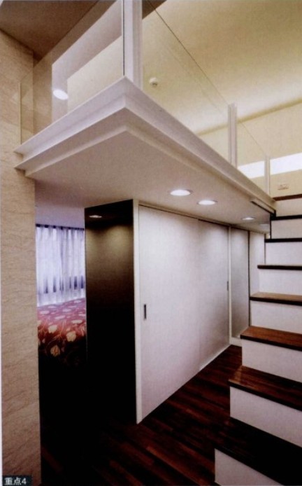 相較于一般空間,夾層房更能規(guī)劃出收納空間。開放式餐廳區(qū)的上方即是利用夾層設計出書房,增加了收納功能。運用好的材質(zhì),如大理石來營造小面積空間的質(zhì)感。
