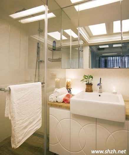 大氣的衛(wèi)生間吊頂讓衛(wèi)生間通亮,衛(wèi)生間玻璃隔斷把淋浴房包圍了起來,好似一間小小的玻璃房子,浪漫的氣氛和悠閑的氛圍讓你盡情的感受沐浴的快樂,整個衛(wèi)生間看起來整齊干凈,特別是衛(wèi)生間玻璃隔斷的襯托下,衛(wèi)生間更加清新動人。