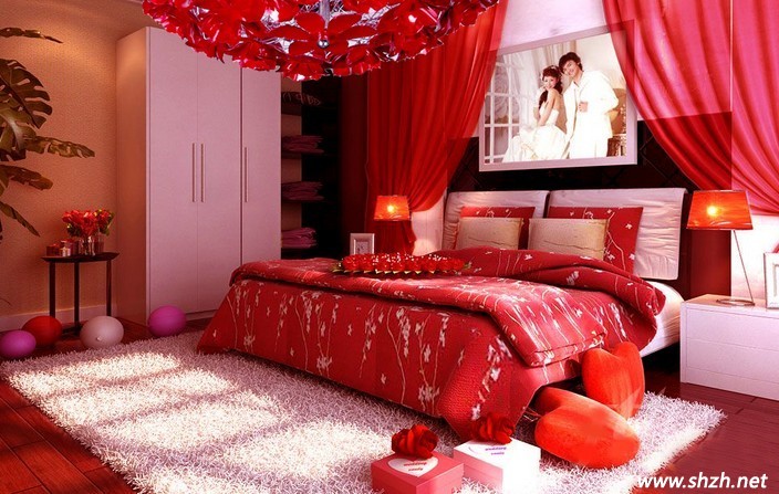 雖然是婚房,顏色也不要一味的追求喜慶,大紅色盡量少點使用,應多以柔和的顏色,簡單的布置為主。紅色是很**啦,但小兩口是過日子的,太過艷麗的顏色容易讓人產(chǎn)生疲憊感覺,又怎么休。