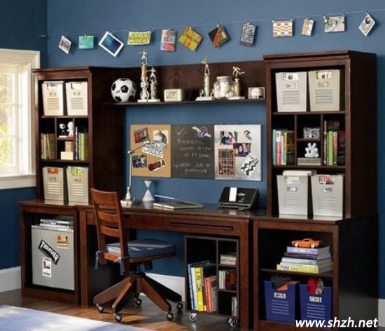 美式風格的兒童書房設(shè)計 實木打造的實用書桌
