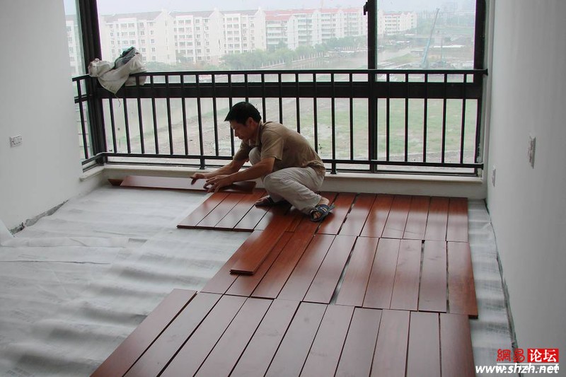 3、 地板安裝時,有條件的話,地板的切割一定要在走廊。以前論壇還就這個問題討論過,有同學認為在走廊切割地板污染公共區(qū)域,不道德。我的想法是完工之后打掃 一下,不打緊。在室內(nèi)切割地板對墻面的污染比較嚴重,類似的還有櫥柜的人造石臺面的切割,我相信裝修過的同學多少都有體會。