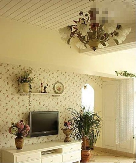 花瓣式的沙發(fā)背景透露了幾分甜蜜,給單調的白墻增添了不少分。用最小的投資打造最實用的效果。