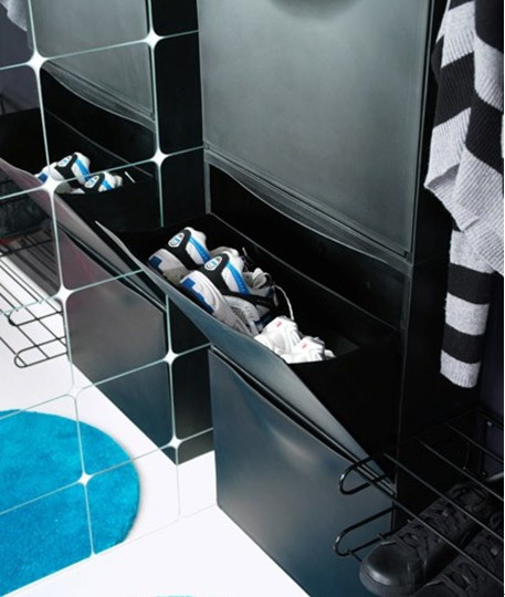 這樣的設計,則是家里鞋子比較所的家庭的親耐。有時候一個鞋架放不下家人所有的鞋子,那就利用垂直空間。這樣的鞋架可以創(chuàng)建一個多層鞋柜空間。