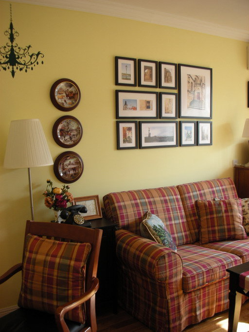 上圖為入住一年后拍的,家具已經全部進場,原先單一的米黃色墻面在這些老紅木家具的襯托下更顯溫馨。