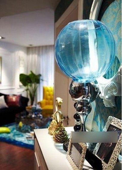 沙發(fā)邊上的臺(tái)燈也很不錯(cuò),下面是透明玻璃的,里邊還可以裝一些自己喜歡的東西做裝飾。