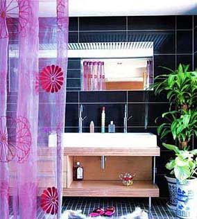 富有靈性的紫色是女人們最鐘愛的色彩,若隱若現(xiàn)的紗簾隱約而不可捉摸,兩者結(jié)合構(gòu)成了家中最迷離的一道風(fēng)景。夏天試著在浴室干濕過(guò)渡區(qū)域配上輕盈淡紫色紗幔,既分割區(qū)域又讓浴室的空氣通透舒適。