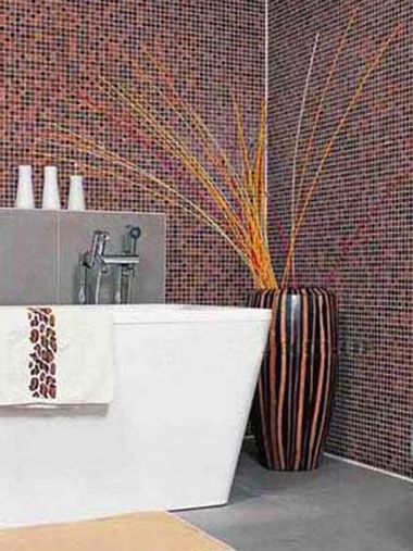 棕色給人一種沉穩(wěn)、高貴之感,大面積的棕色馬賽克和造型硬朗的浴具搭配,營造出平穩(wěn)卻不乏生動(dòng)的空間。以下面的例子為榜樣,現(xiàn)在就拆解棕調(diào)衛(wèi)浴的打造招數(shù)!