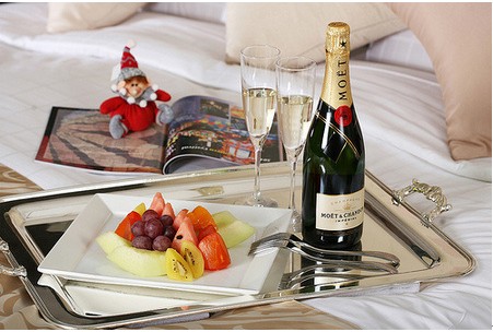 可以與酒店溝通,送你們兩杯上好的香檳酒,也可以將私藏的珍品在那天開啟。不妨用一些絲帶或鮮花裝飾酒杯,更唯美夢幻?!?nbsp;