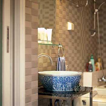 將自然元素融入古典藝術(shù),黃褐色、白色、橙紅子多彩的反差,古樸瓷磚與樹枝相呼輝映,讓整個(gè)衛(wèi)浴更富于人情 味,更添環(huán)保的韻味。