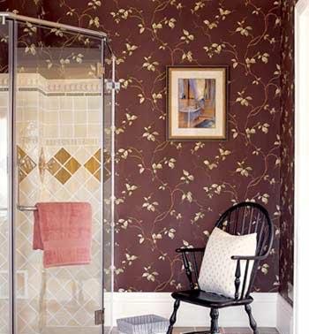 防水壁紙的表層附有壓膜,一般的水漬都不會留下印記。但是防水性能再好,也要做好衛(wèi)浴里干、濕區(qū)的分離設(shè)計。用瓷磚或馬賽克單獨辟出盥洗、淋浴區(qū)域;安放坐便器和儲物的空間周圍則可使用壁紙裝飾。