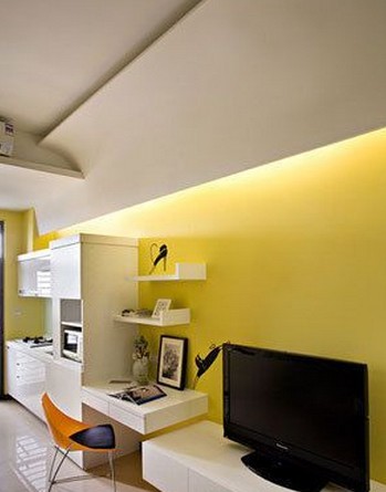開(kāi)放型的小廚房,整體的色調(diào)與造型都以現(xiàn)代簡(jiǎn)約風(fēng)格為主,流暢的直線設(shè)計(jì)。白色的兩人小餐桌色調(diào)純凈,與暖黃色背景墻對(duì)比非常和諧,色彩搭配分外出彩,讓人一下子有了親近自然的舒適感。