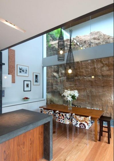 在群山翡翠中擁有一幢別墅是很多人一生為之奮斗的目標(biāo)。從公寓房到別墅這個(gè)別墅人們對(duì)于居住空間的要求越來(lái)越高,都市里的高樓林立哪有山間別墅自然享受。遠(yuǎn)離鋼筋混凝土的氣息,擁抱自然那是最為理想的居住場(chǎng)所。我們一起來(lái)走進(jìn)這一幢山間別墅。別墅里的每一個(gè)房間布置圍繞著內(nèi)庭院展開(kāi),而在庭院內(nèi)部則有著原生態(tài)的植被和巖壁。 我們隨眼可見(jiàn)的巨大的玻璃推拉門(mén)設(shè)置于主要的起居室區(qū)域,這樣又能使得內(nèi)外空間流動(dòng)起來(lái)。 對(duì)于主臥室這個(gè)位于巖壁的最高位置,則是作為雙親父母的房間,這里有著最好的觀景方位,亦體現(xiàn)著對(duì)父母的濃濃親情。