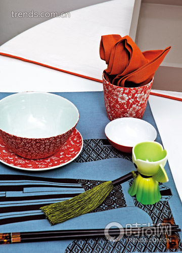 中國(guó)人講究飲食文化,春節(jié)里的家宴更是馬虎不得。讓我們看這個(gè)場(chǎng)景:古雅的花窗下,一場(chǎng)盛宴正要開(kāi)始。白色圓桌上,年年有“魚(yú)”的桌旗上,盛滿(mǎn)了一桌的喜氣洋洋?;ǘ涞谋P(pán)碗碟,是歡喜的紅色,散發(fā)著濃郁的中國(guó)氣息。一笸籮的山楂,映襯著金紅色的鯉魚(yú)的圖案,滿(mǎn)目的是鮮亮與快樂(lè)??蓯?ài)的金魚(yú)蛋杯,雖然是最傳統(tǒng)的中國(guó)經(jīng)典圖案和意向,但現(xiàn)代時(shí)尚的設(shè)計(jì)讓我們眼前一亮。這一場(chǎng)盛宴,從形到色,既賞心悅目,又勾起食欲無(wú)邊。