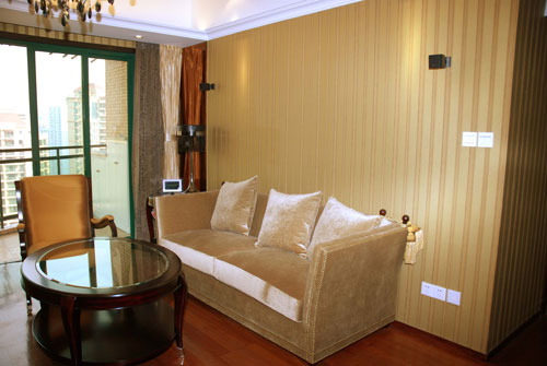 據(jù)HOLA特力屋設計總監(jiān)Joe介紹,軟裝布置一般用三個層次來呈現(xiàn)分別是:“天、地、墻”。這次同樣按照這個主軸開展我們的打造方案?!疤臁鄙?,屋主選用的是古典的水晶吊燈,“墻”面上大面積的印花窗簾都透露著古典雅致的風格,同時屋主的沙發(fā)是略帶有巴洛克的風格,整體呈現(xiàn)古典優(yōu)雅之感。