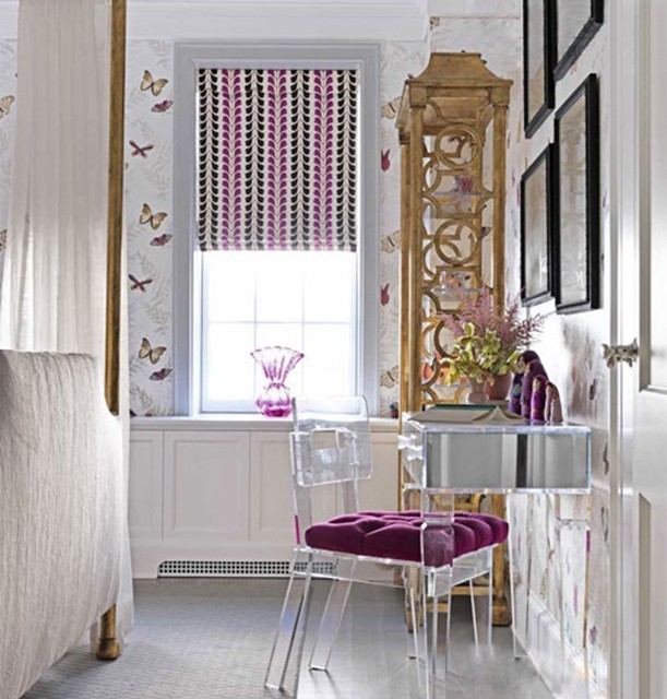 臥室的墻面滿貼藝術(shù)墻紙,房間最起眼的是絲絨的床,薄荷綠毛毯,淺色地板,法式的篷椅。這些都顯得主人家的高貴及很有品位。