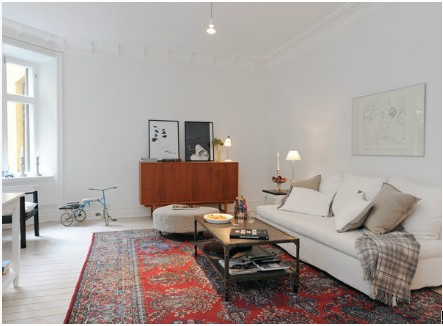 大面積紅色印花地毯是整個房間的亮點,民族風(fēng)情的圖案有著人文氣息與清新自然的環(huán)境協(xié)調(diào)融合。簡單的木質(zhì)家具簡單且時尚,不同深淺的顏色搭配。白色的小清新中有著小小的變化會帶來很大的震撼。