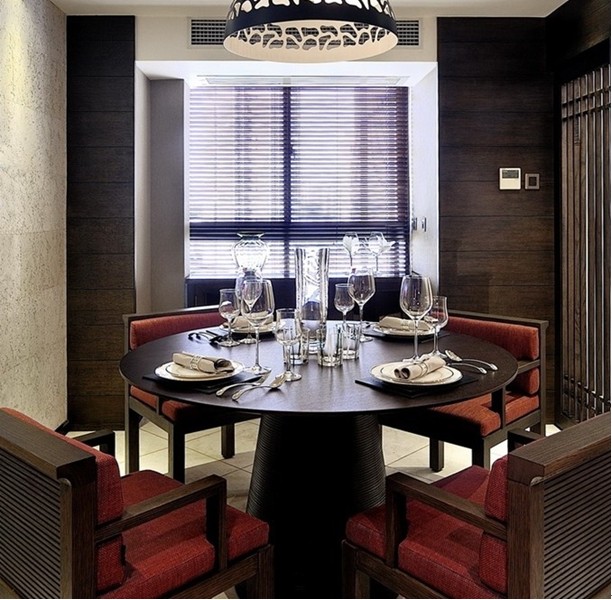餐廳空間利用簡單的墻面木板和壁紙等材料來打造出一個很簡單又不是檔次的氛圍。其簡單的造型讓沉悶的中式風(fēng)格得到了舒緩。一張圓形餐桌在整個空間的烘襯下,配上穩(wěn)重的深紅色,不管從視覺上還是舒適度上都運(yùn)用的相當(dāng)?shù)轿弧?/p>