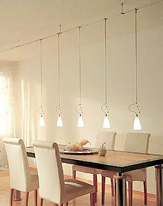用單燈罩直接配光型吊燈投光于餐桌的方法在當(dāng)前比較流行,特點(diǎn)是光照效果好,燈具造型簡潔,線條分明,美觀大方。