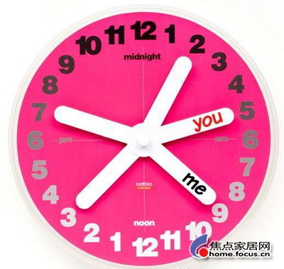 上榜理由:這是一個(gè)只屬于你們兩個(gè)人(You & Me )的掛鐘,沒有分鐘刻度,沒有傳統(tǒng)的時(shí)針、分針和秒針,只有24個(gè)小時(shí)刻度,還有幾個(gè)可以隨意涂鴉的白色指針,你倆可以在這些白色指針上寫或畫上對于你們來說最有意義的人、物或地方,這些白色指針也是象表針一樣在轉(zhuǎn)動的,很浪漫吧~~