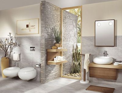 墻面的處理方式應(yīng)該是盡可能地富有想像力,要不就盡量求簡。在水泥墻上涂上一層油漆會(huì)使浴室增添暖度,而馬賽克玻璃磚,刻花磁磚,甚至板舌以及凹槽處理都能使墻壁的設(shè)計(jì)更為有趣。
