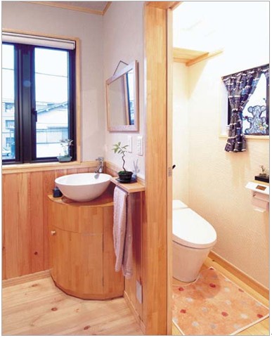 衛(wèi)浴間鋪設(shè)了超防水的木材地板,與所有房間保持一致的日式風(fēng)格體現(xiàn)。小小的衛(wèi)浴間裝飾也是不可馬虎的,擺設(shè)上可愛的小盆栽,也能起到很好的裝飾效果。