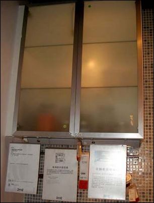 在廚房背面也設(shè)置了隔板,瓶瓶罐罐都可以擱在這上面,容量和壁柜相差無幾。