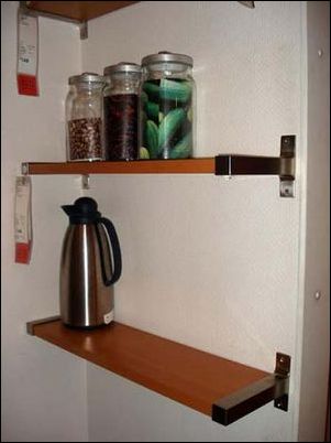 該鞋柜貼近墻壁的鞋柜放在廚房,占地面小,收容量大。同時,柜子的上方還可以當(dāng)做放杯子、手套等廚房雜物的隔板用。