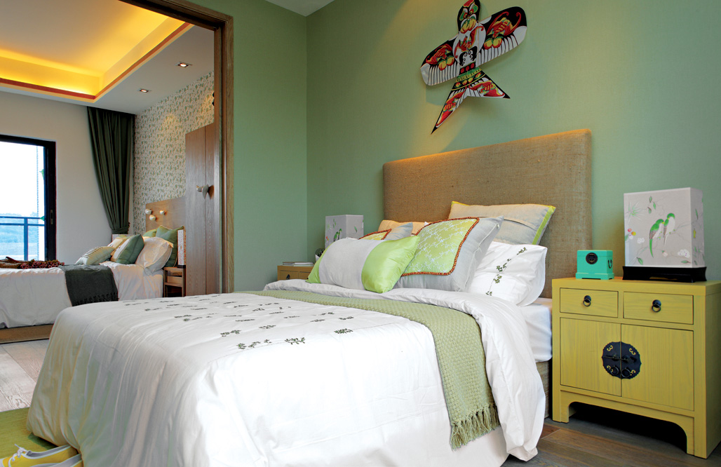 臥室的整體色調如果用紫色調的話會讓人有壓抑感,紫色確實能帶來沉靜、浪漫之感,但如果臥室大面積涂刷成紫色,就會讓整個空間色調變深、光線變暗,難免讓人感到壓抑,影響人們的心情。另外,濃重的粉紅色和紅色也不宜大面積作為臥室主色調。因為這種顏色會讓人處于興奮狀態(tài),長久居住會讓人感到煩躁,并出現(xiàn)情緒不穩(wěn)的狀況。如果新婚夫婦已經(jīng)將墻壁刷成了紅色,不妨用白色的裝飾來點綴,以舒緩紅色帶來的視覺沖擊。臥室顏色最好以暖色調、淺色系為主,淡藍、鵝黃都是不錯的選擇。
