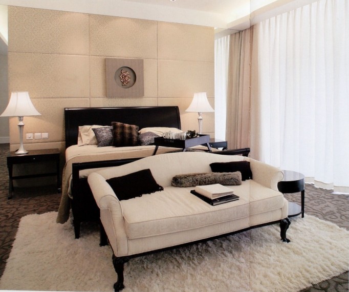 雅致風格出現(xiàn)在上世紀末本世紀初。它既有歐式古典的浪漫,又有現(xiàn)代主義的干練。它是細膩,精致的生活,它是人文情懷的向往。雅致風格的空間有著現(xiàn)代風格的空間布局,而在審美情趣上接近新古典。雅致風格強調(diào)比例和色彩的和諧,用色淡雅、恬靜,沒有強烈的對比,濃重的色感和喧鬧的配色。材料的選擇特別注意與顏色的和諧性,多為墻紙為主要裝飾面材,結(jié)合混油的木作。因此,墻紙的運用尤為重要,也常常成為室內(nèi)的主導(dǎo)色調(diào)和基色調(diào)。墻紙的花紋多為淡雅的細紋,配合以同樣細致的圖案的布藝。