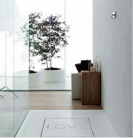 為了使白色的空間不會顯得那么枯燥無味,在浴室內(nèi)安置了大件綠色植物,來充填空間的生氣,這也是諾弗洛設(shè)計理念的一大特色。置身于這樣浴室溫泉猶如室外溫泉區(qū)一般。地面上印著的"LOVE”,體現(xiàn)了設(shè)計師的浪漫因子居多,讓人一踏進衛(wèi)浴間就可以感受到溫馨和浪漫。