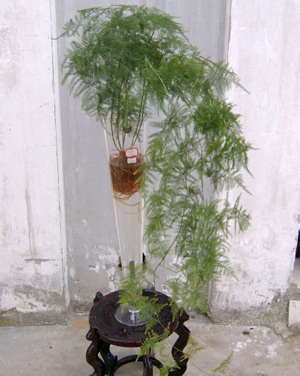 百合科天門冬屬,多年生常綠草本花卉。莖細弱,枝纖細呈葉狀,水平開展?;ㄐ?,白色。漿果球形,黑色。果實成熟后,呈現(xiàn)出濃綠叢中點點紅的景象,清雅可愛。植株耐陰性強,擺在床頭、桌案,文雅大方,是一種很好的室內(nèi)花卉。文竹也是理想的切花襯托材料。近年來,已經(jīng)成功開發(fā)出水養(yǎng)文竹,置于居室內(nèi)更是清雅。