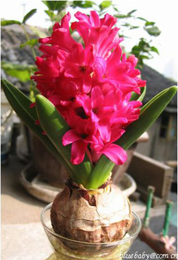 又名洋水仙,屬百合科風信子屬,多年生草本,鱗莖球形或扁球形,外被皮旗呈紫藍色或白色等,葉基生,葉片肥厚,帶狀披針形。花莖從葉莖中央抽出,總狀花序,花姿嬌美,五彩繽紛,艷麗奪目,清香宜人。性喜陽光充足和涼爽濕潤的環(huán)境,既適合盆栽,又適宜水養(yǎng)。水養(yǎng)時將其鱗莖置于水培營養(yǎng)液中,外形潔凈,觀賞性強!