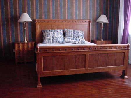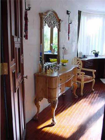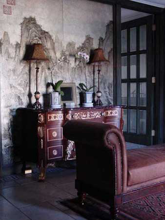 我家里的很多木制的門、書柜、櫥柜都是有呼吸、有生命的。即便有些地方刷上了大綠,別人可能會想綠色很怯,但經(jīng)我處理以后,這個綠是透明的。每一處木頭的顏色都反復(fù)做了很多遍,手撫摩的時候非常有質(zhì)感。有些人看了以后說:´噯,你這不錯,我也學(xué)學(xué)。´我告訴他們怎么弄的,都回去做了,結(jié)果沒一個人做出來是這意思。知道為什么嗎?──偷懶!中國人怕麻煩,各行各業(yè)都想省事。我這個漆反復(fù)打磨了7、8次,干了,砂輪磨掉,再用很淡的水彩顏色刷,漆了一個月。可他們5天就干完了,一共才刷了2、3回。工序到不了,不來這效果。要想讓木頭不是´死´的,就要用很豐富的顏色沁在木頭里面,反復(fù)摩擦反復(fù)吃進去,就像畫油畫一樣,反復(fù)畫很多層和你只畫一遍出來的質(zhì)感是不一樣的。