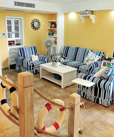 橘、紅、黃的暖色彩,與其對比的藍、綠、紫冷色彩,相互搭配起來,除了鮮明,還能產(chǎn)生韻律感。同樣一組藍色沙發(fā),在白墻或橘紅墻或黃墻的背景之下產(chǎn)生不同的感覺。藍與黃可再加一個中間色綠色來調(diào)和。