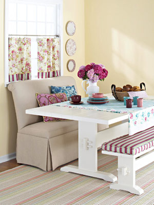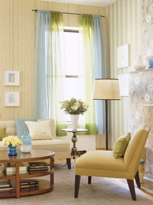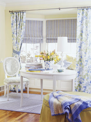 這個(gè)色彩繽紛的小休閑區(qū)是不是讓你心情大好?仔細(xì)看一看,其實(shí)空間本身的色調(diào)很中性化,用了淺褐色的家具和淡雅的黃色墻面。裝飾的重點(diǎn)在于那些表面布滿了花紋的的小配飾,天藍(lán)、紫紅、粉紅、淺綠……讓整個(gè)空間格調(diào)煥然一新,充滿女人味。