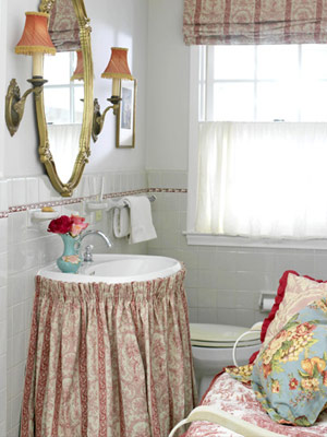 除了毛巾一類的必須品,很多人從來沒有想過進(jìn)一步裝飾他們的浴室,這就好比檢驗(yàn)室里只觀察得到瓦狀細(xì)胞那樣單調(diào)。不過幸運(yùn)的是,空白的背景可以和任何色彩搭配。比如在這個(gè)案例中,只用了雅致的紡織品和浪漫的鍍金梳妝鏡,就把小小的空間變成了一個(gè)迷人的“避難所”。