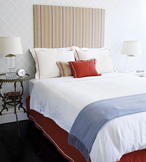 紅、白、藍(lán)還有粉色……有時(shí)候,只有冒險(xiǎn)嘗試才能贏得勝利!枕頭由紅與粉混合出濃重質(zhì)感,藍(lán)色格子狀的壁紙為粉紅的床頭板預(yù)設(shè)了一個(gè)有趣的背景。這個(gè)房間賞心悅目,絕不是隨處可見的常規(guī)搭配。