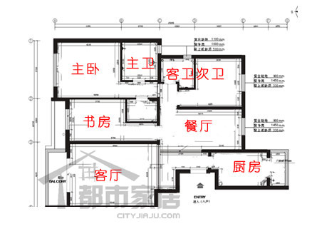 一 把書房劃入主臥,封住書房原來的門,并且把原來無法利用的過道利用起來作為儲物間。二 在客廳與門廳之間突出的一角做了儲物柜。三 入戶門正對餐廳,毫無遮蔽,這在風水上來說是比較忌諱的。設計師在入戶門正對處增加了玄關,既化解了不詳的風水,又具有收納功能。