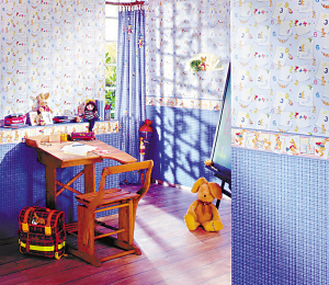 從目前一般兒童房裝飾裝修看,還應(yīng)重點注意以下三類裝飾材料:一是盡量少用石材瓷磚類材料,防止放射性污染;二是選擇水性木器漆涂料,防止苯污染;三是嚴(yán)格控制人造板類(大芯板、貼面板及密度板)材料,防止甲醛污染。