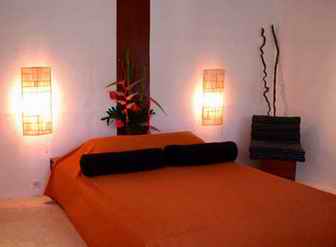 當(dāng)?shù)氐娘椘芳凹揖佣酁槭止ぶ谱?,?gòu)思造型奇特富于靈氣鄉(xiāng)土氣息濃重。東南亞元素最能體現(xiàn)物我相融的境界,自然的闊葉植物、鮮艷的花卉、寓意美好的蓮花是人們的最?lèi)?ài)。在一間充滿熱帶風(fēng)情的居室中,用大花墻紙可以使居室顯得緊湊華麗,這種圖案元素來(lái)自東南亞的服飾設(shè)計(jì),比如華麗的衣衫或鞋子,另一方面則出自對(duì)熱帶植物的遐想。這種花型的表現(xiàn)并不是大面積的,而是以區(qū)域型呈現(xiàn)的,比如在墻壁的中間部位或者以橫條豎條的形式呈現(xiàn)。同時(shí)圖案與色彩是非常協(xié)調(diào)的,往往是一個(gè)色系的圖案。東南亞風(fēng)格的圖案設(shè)計(jì)是有其代表性元素的。