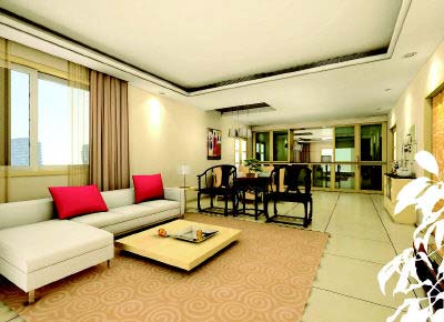 140平米左右的居室不可能做到每一處的布局都很合理,所以設計中很關鍵的一個問題就是要去除房間的“死角”。蔣雯麗家的客廳向東面伸進去了20厘米,再加之也是通向主臥的通道,所以很難再擺放家具。設計師便因地制宜地將該處做成了整墻的大柜子,這樣不僅使客廳空間更規(guī)則,而且全家的雜物也有了一個好去處。